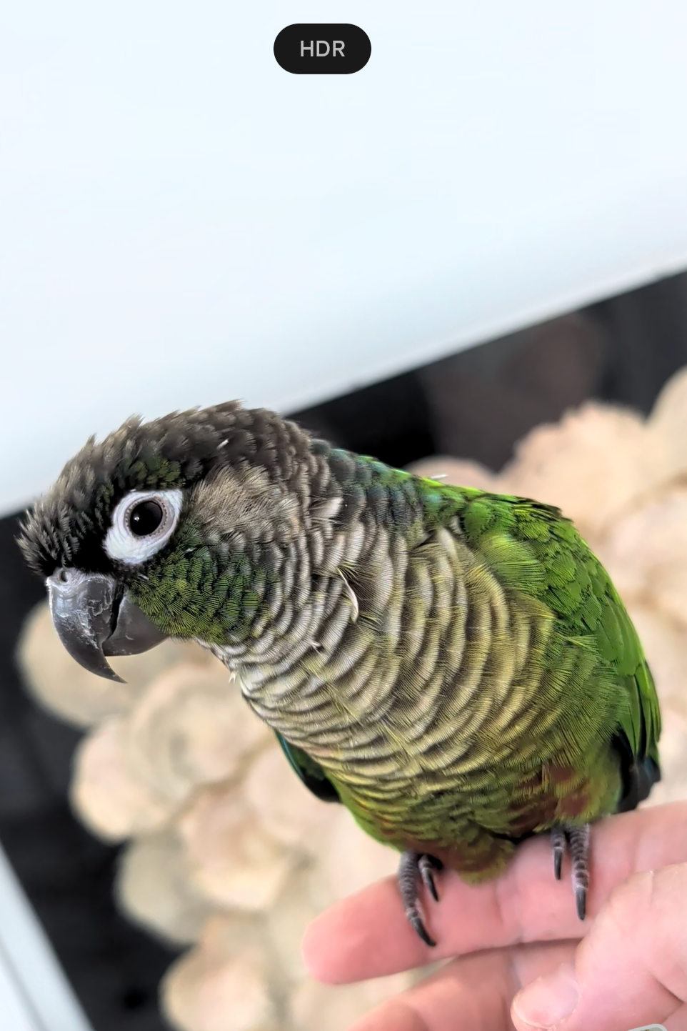 Ikki is an absolute doll who just wasn’t getting along with some of his previous inhabitants. Like all GCC, he’s a little spicy but also sweet! He’s just over 2 years old and his birthday is in December. He is also the FASTEST flier I have EVER seen. The speed that this little dude whips through the air and navigates turns is amazing. In another life he could have been named Maverick!